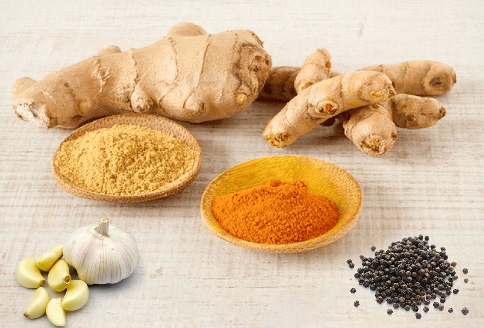 Một số loại thực phẩm có khả năng chống viêm như tỏi, gừng, nghệ và hạt tiêu đen rất hữu ích trong mùa mưa. Tỏi và gừng có tính kháng khuẩn và chống viêm tự nhiên, giúp ngăn ngừa các bệnh cảm cúm và viêm họng. Ngoài ra, thành phần curcumin có trong nghệ cũng được biết đến một hợp chất có tác dụng chống viêm mạnh mẽ và giúp tăng cường miễn dịch.