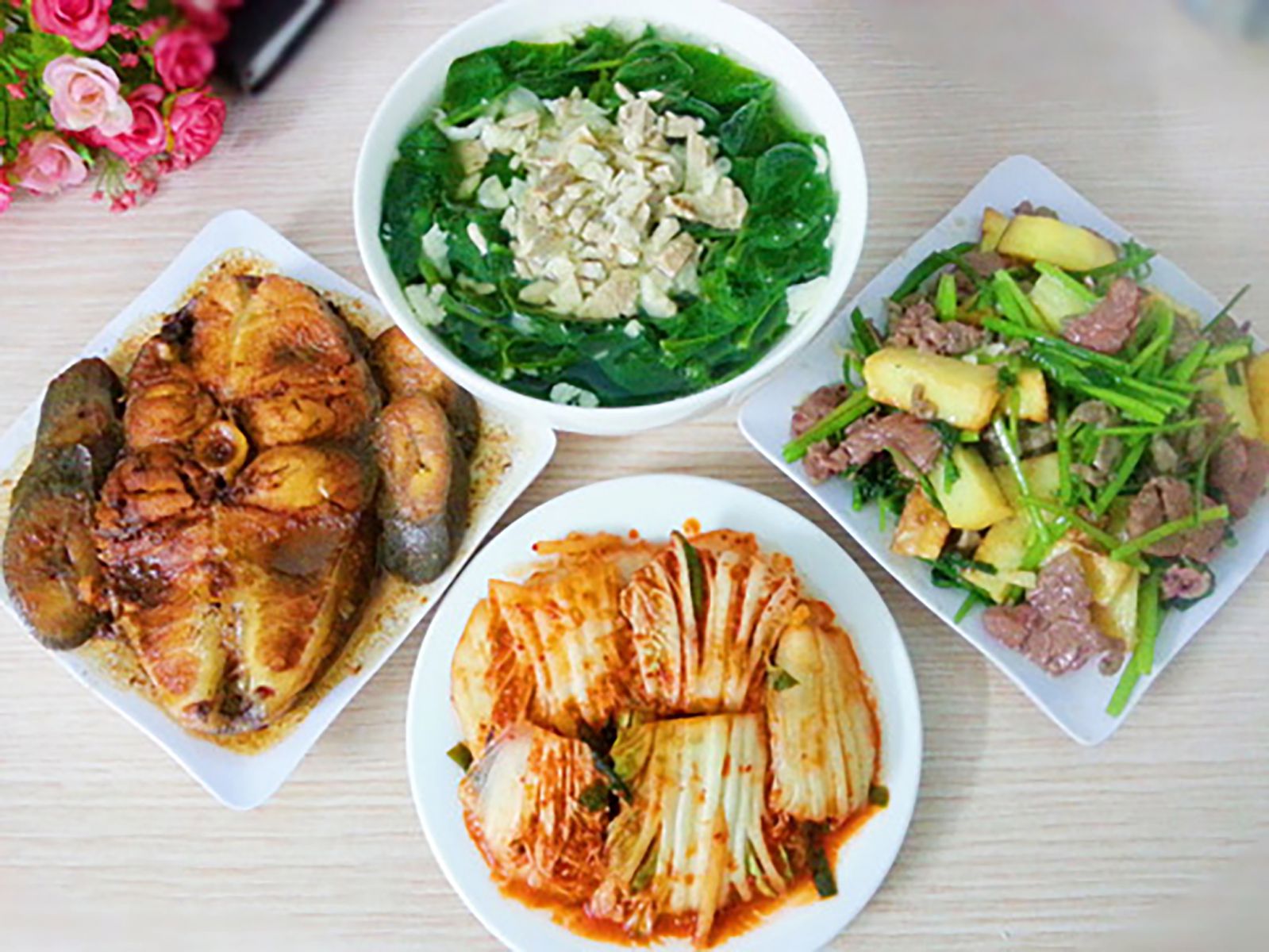 1. Có thể chế biến các món như bữa ăn trưa hoặc chiều nếu nhà mình sẵn sàng mâm cỗ sớm: Cơm, canh, xào, thịt, cá .. Lưu ý không nên quá nhiều dầu mỡ, đồ chiên rán, bổ sung rau củ quả các loại đậu, nấm,…